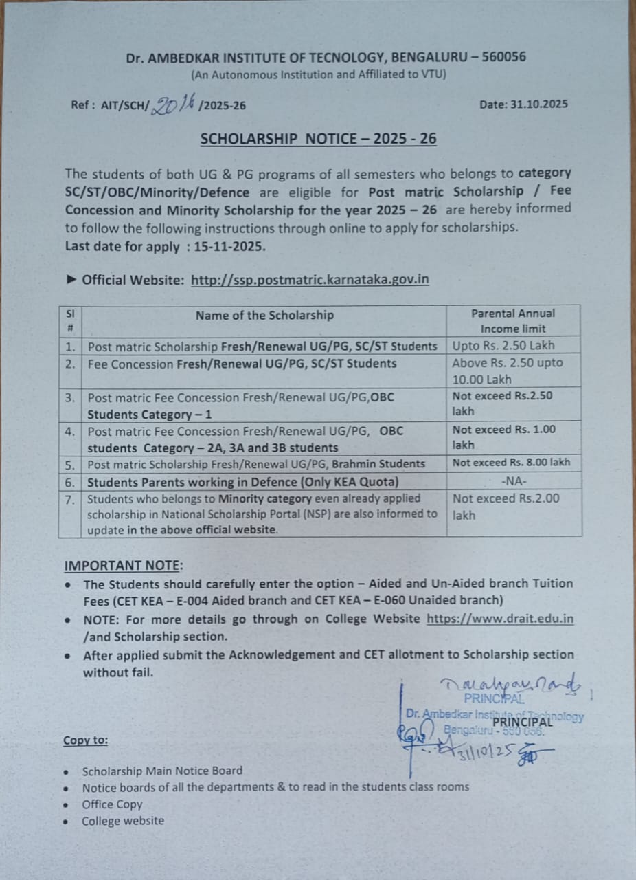 scholarship_noticeFind attached document for details on Post matric scholarship/Fee concession and Minority scholarship for the year 2025-26