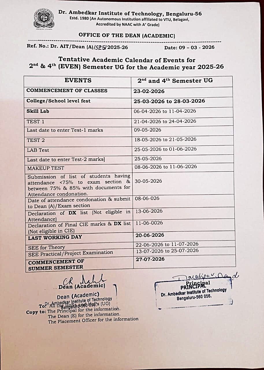 UG - Calendar of Events for EVEN (2nd and 4th Semester) for the academic year 2025-26 Published On: 10 Mar 2026 12:04 PM Category: Calendar of Events UG_EVEN_Semester-Calander_of_Events